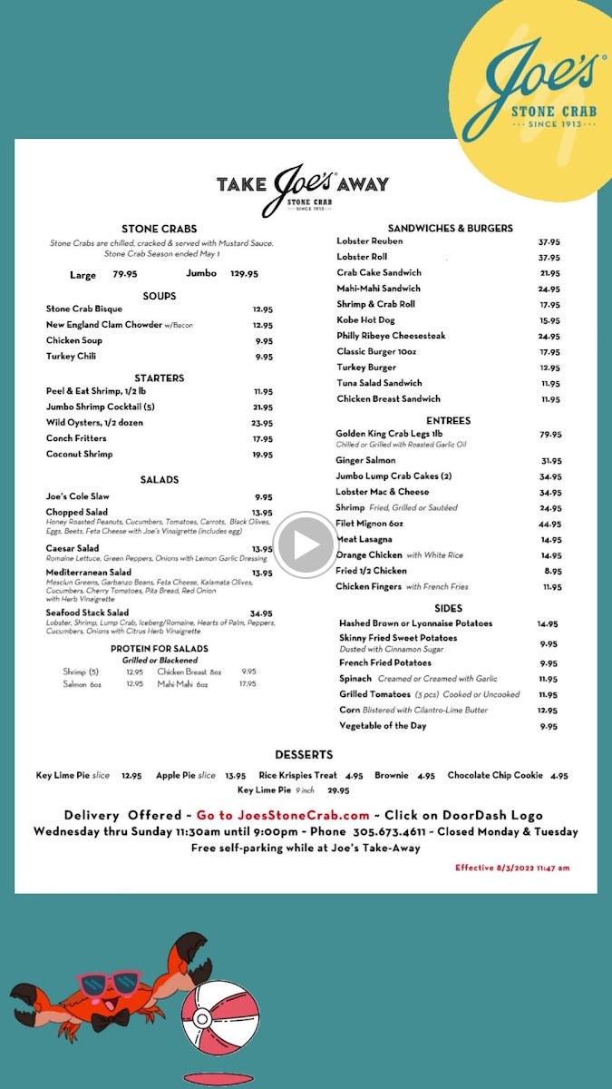 Welcome to Joe's Stone Crab, an iconic seafood restaurant nestled in the heart of Miami Beach at 11 Washington Ave. Since its inception, Joe's has been a sanctuary for seafood lovers, celebrated for its fresh stone crabs and a diverse menu that brings together the flavors of the sea in an unforgettable dining experience.